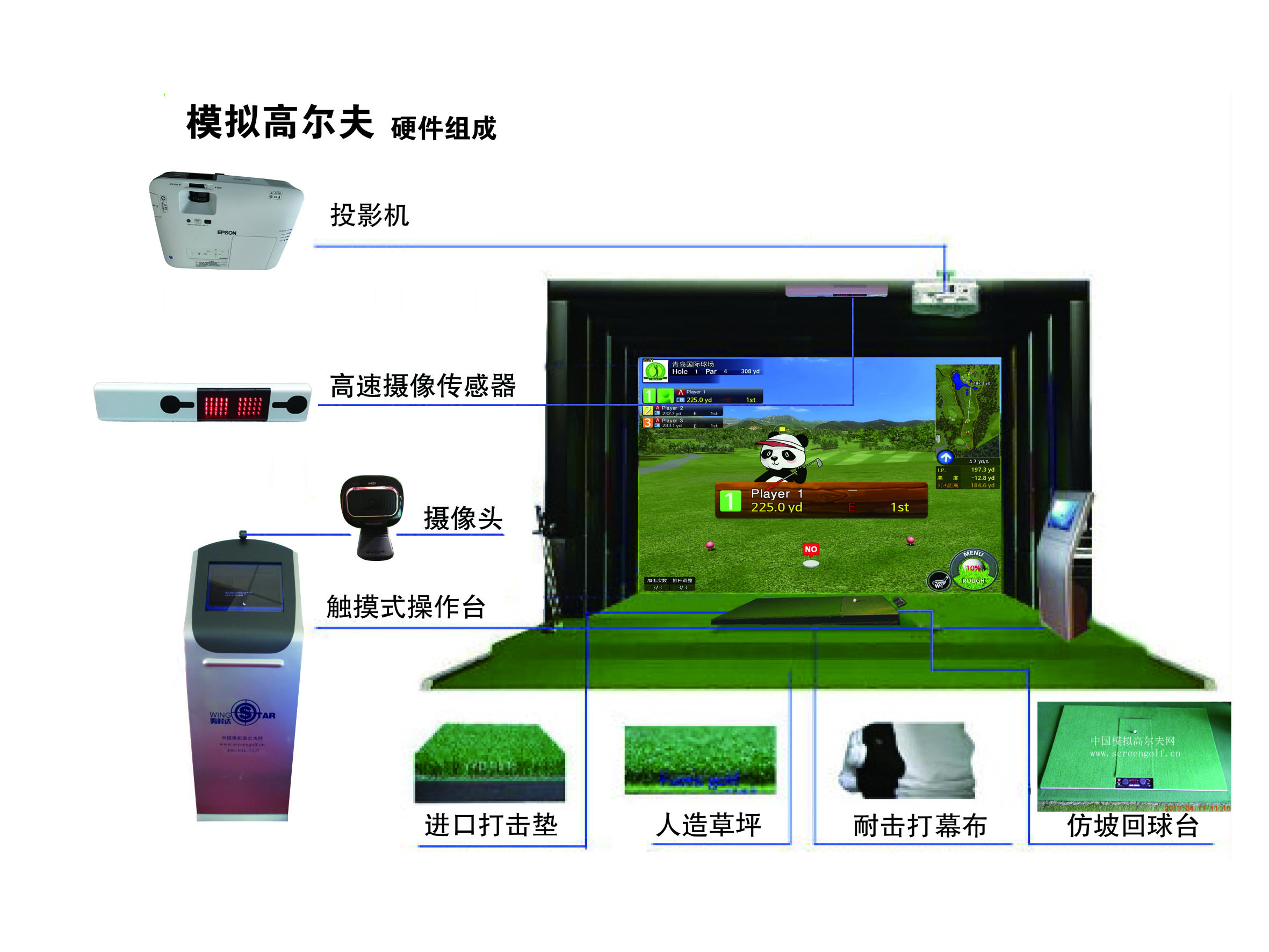 2.軟件(含國內(nèi)外51個球場,逐步增加,3D逼真畫面)