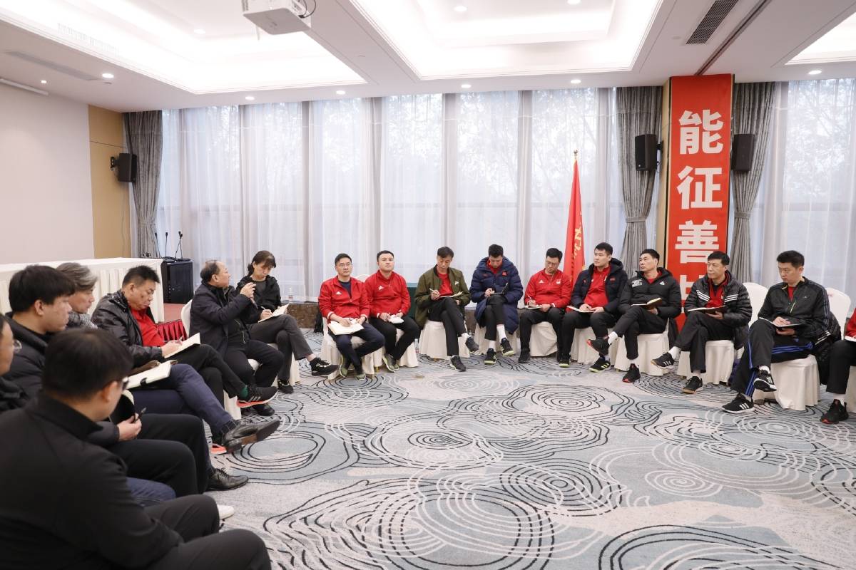中午劉國永副局長召集復(fù)合型團(tuán)隊(duì)人員開座談會(huì),各團(tuán)隊(duì)成員紛紛表示很高興來到本次訓(xùn)練營,非常珍惜此次學(xué)習(xí)機(jī)會(huì),相互配合,希望用自己的專業(yè)知識(shí)為隊(duì)伍服務(wù),助力國家女排再創(chuàng)輝煌。國永副局長再次強(qiáng)調(diào)了訓(xùn)練營教練團(tuán)隊(duì)、科技團(tuán)隊(duì)、體能團(tuán)隊(duì)的使命任務(wù)和責(zé)任擔(dān)當(dāng),介紹了新周期科技助力帶來的變化,并邀請(qǐng)到美國生物力學(xué)博士拉爾夫在晚上為全體復(fù)合型團(tuán)隊(duì)成員授課。最后,他要求全體復(fù)合型團(tuán)隊(duì)成員,拿出全新的姿態(tài),強(qiáng)弱項(xiàng)、補(bǔ)短板,鼓勵(lì)教練員加強(qiáng)學(xué)習(xí),多溝通交流,為落實(shí)總書記要求,建設(shè)體育強(qiáng)國而奮斗。